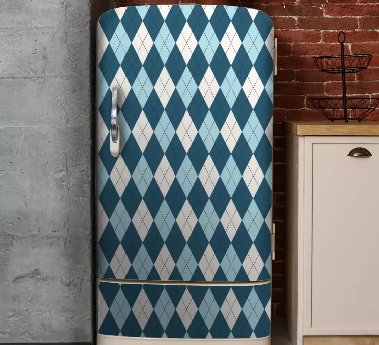 Reference: A31735Diamond check blue pattern fridge decal