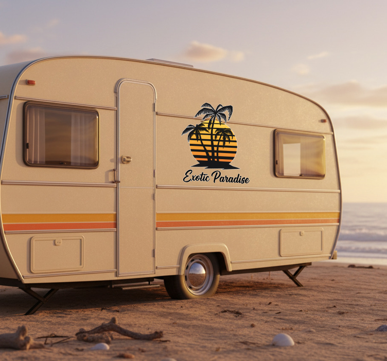 The Exotic paradise sunset campervan decal transforms any space into a tropical oasis! Imagine cruising down the highway, with vibrant colors and stunning designs capturing the essence of your adventurous spirit. This campervan decal is not just a decoration; it’s an expression of freedom, wanderlust, and joy. Elevate your campervan’s appearance and inspire those around you to embrace the beauty of travel and exploration!