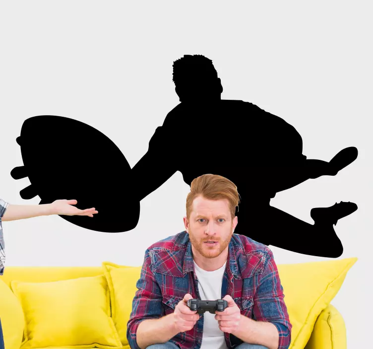 Reference: A47295The image captures an energetic football player in a dynamic pose, showcasing the exhilarating nature of the sport. The silhouette emphasizes motion, making it ideal for sports enthusiasts who appreciate the excitement and adrenaline that comes with football.
