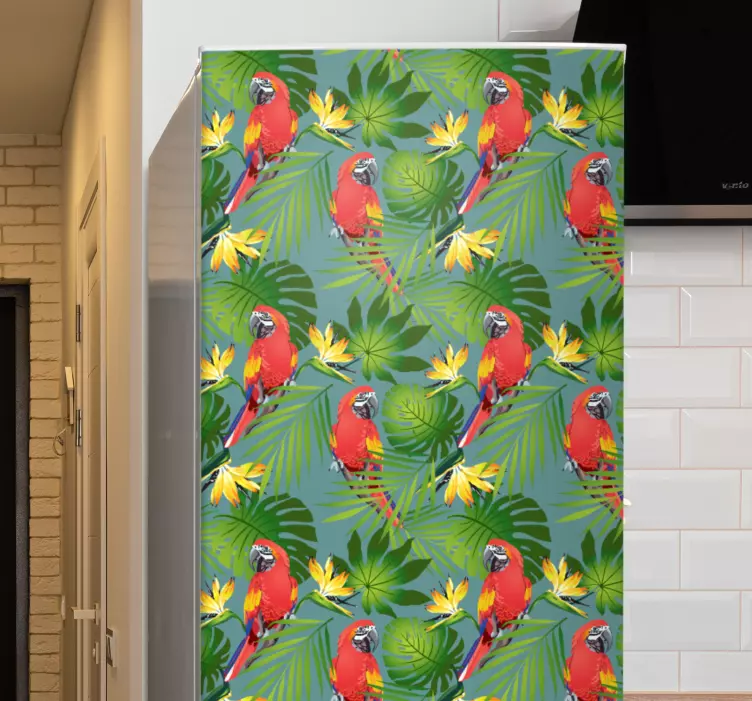 Fridge sticker tropical parrot design
