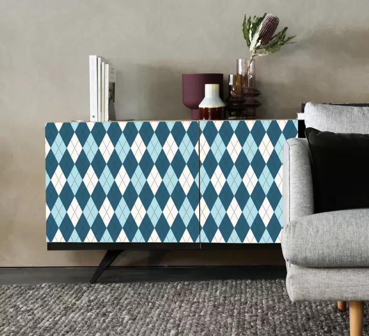 Introducing the exquisite Furniture sticker diamond shape design, a stunning graphic representation that features a captivating rhombus and diamond pattern in a beautiful blue hue. This geometric design adds a touch of elegance and modernity to any furniture piece, transforming ordinary items into decorative masterpieces. The perfect combination of rhombuses and diamonds creates a visually appealing aesthetic that brightens up your space!