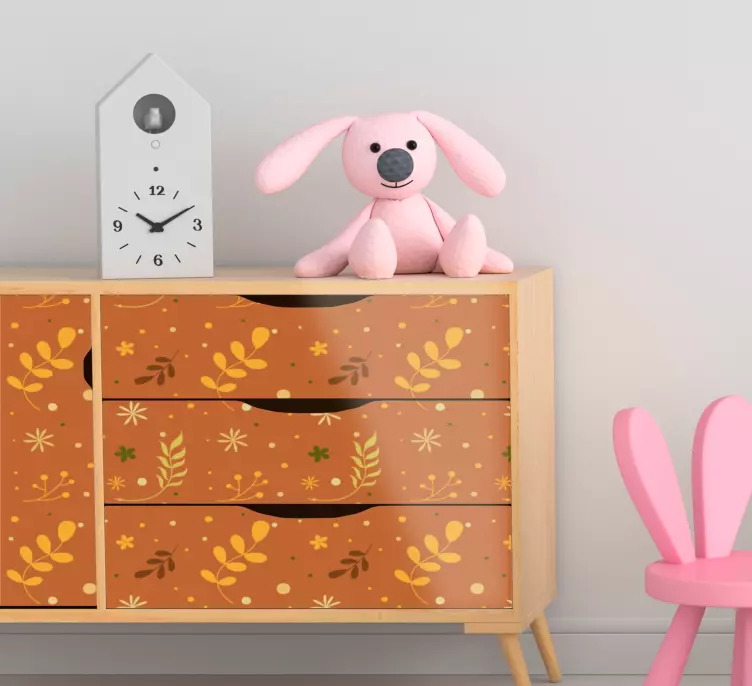 Transform your living space with our stunning Furniture sticker floral pattern design. This beautiful design features captivating twigs and leaves, creating a delightful floral pattern that brings the essence of nature indoors. The warm tones and playful elements of this sticker make it a perfect addition to any home decor, adding a touch of vibrancy and charm to your furniture.