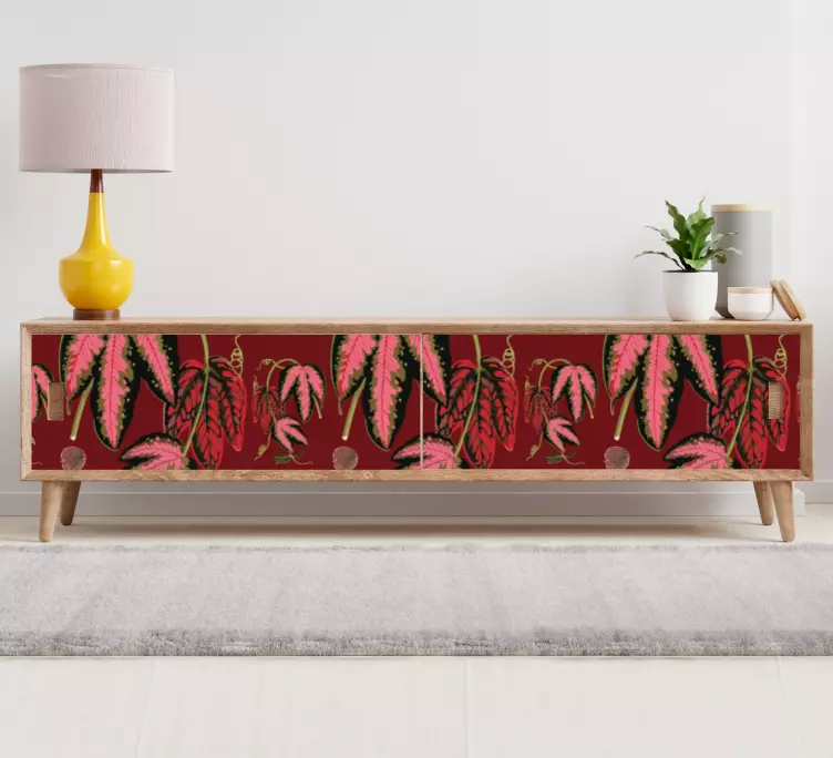Transform your living space with our stunning Furniture sticker lush leaf design, featuring a vibrant illustration of maranta leaves that beautifully combines red, green, and pink hues. This floral pattern brings a touch of nature indoors, making it the perfect furniture accent for anyone looking to add a pop of color and a sense of tranquility to their home. The lush flora design is not just visually appealing; it also creates a serene atmosphere that can uplift any room!