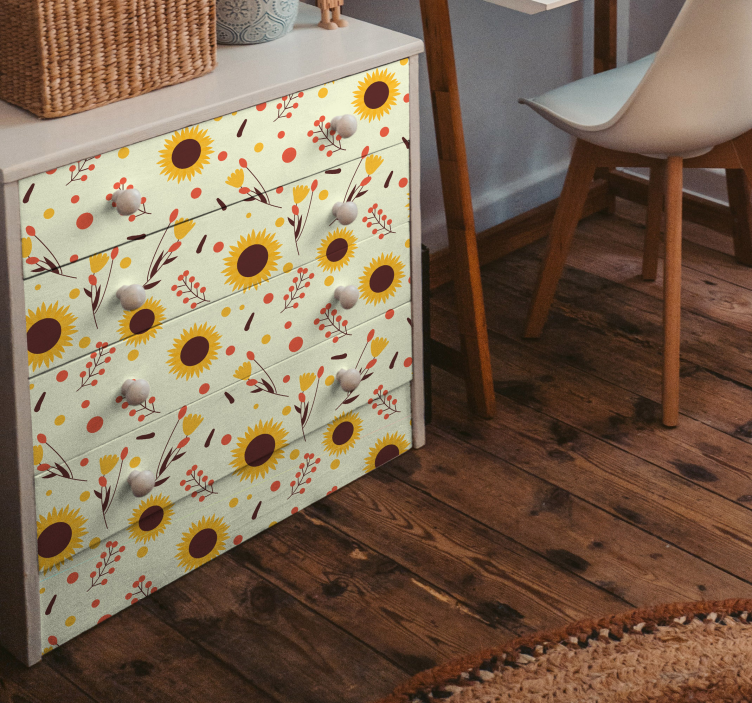 Transform your living space with our Furniture sticker sunflower pattern design! This delightful design features vibrant sunflowers and a colorful floral pattern that brings the beauty of nature indoors. Perfect for adding a touch of warmth and cheer to any furniture piece, this sticker is crafted to inspire joy and liveliness in your home.