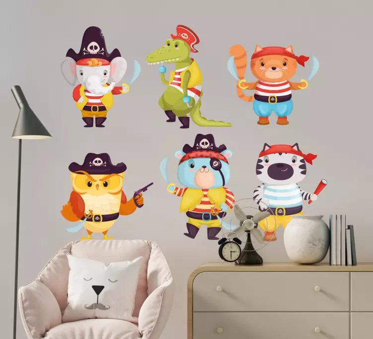 Reference: A30658Group of Pirate Animals Kids Bedroom Wall Sticker