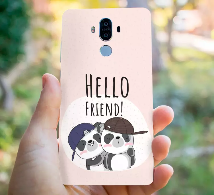 Introducing the Huawei sticker pandas embracing each other, a delightful design that showcases two adorable panda characters playfully embracing each other. This charming cartoon illustration radiates warmth and humor, making it the perfect addition to any phone or personal item. With a friendly vibe that says hello to friendship, these cute pandas bring a touch of joy and personality wherever they are placed!