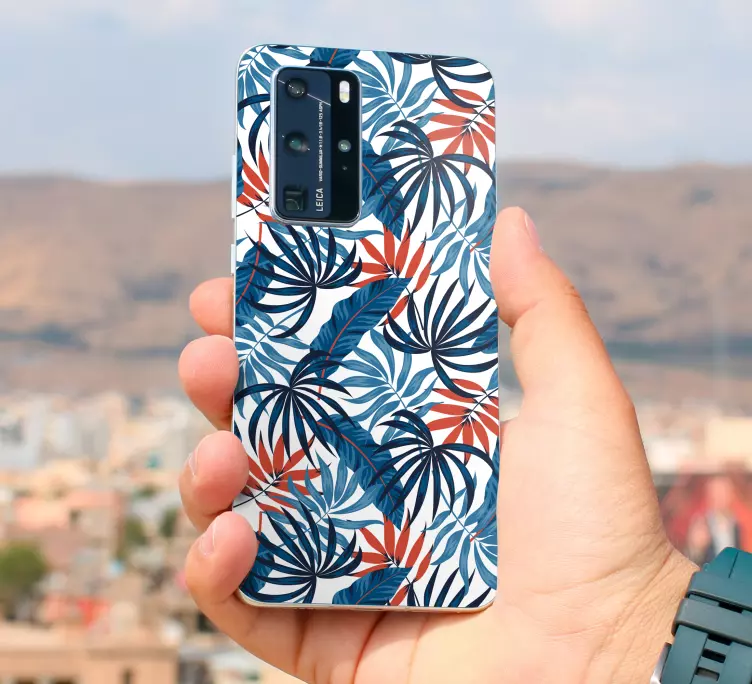 Introducing the Huawei sticker tropical leaves design, a vibrant and eye-catching decoration that beautifully showcases a variety of leaves in rich tropical patterns. The stunning combination of blue, red, and green hues brings a refreshing touch of nature to your phone, transforming it into a work of art that reflects your love for plants and the beauty of the tropics.