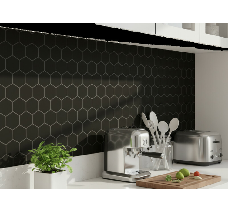 Reference: A53853Transform your kitchen into a stylish haven with our Kitchen wall sticker matte black honeycomb. This exquisite design features a stunning honeycomb pattern in a chic matte black finish, perfect for adding a contemporary touch to your home decor. The geometric shapes create a visually appealing effect, enhancing the overall ambiance of your kitchen space.