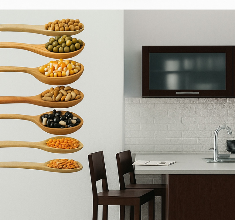 Reference: A54293Transform your kitchen with our stunning Kitchen wall sticker wooden spoons design! This eye-catching piece features beautifully illustrated wooden spoons, bringing a warm and inviting atmosphere to your cooking space. The intricate details and vibrant colors make it a perfect addition for those who love to cook and appreciate art.