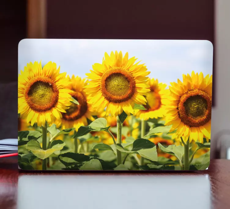 Introducing our stunning Laptop skin sunflower field scene, a vibrant design that captures the beauty of nature with its rich depiction of sunflowers blooming in a vast field. The bright yellow flowers symbolize warmth and positivity, bringing the outdoors right to your workspace. This laptop skin transforms your device into a canvas of vegetative beauty, perfect for nature lovers and those seeking a splash of color in their daily routine!