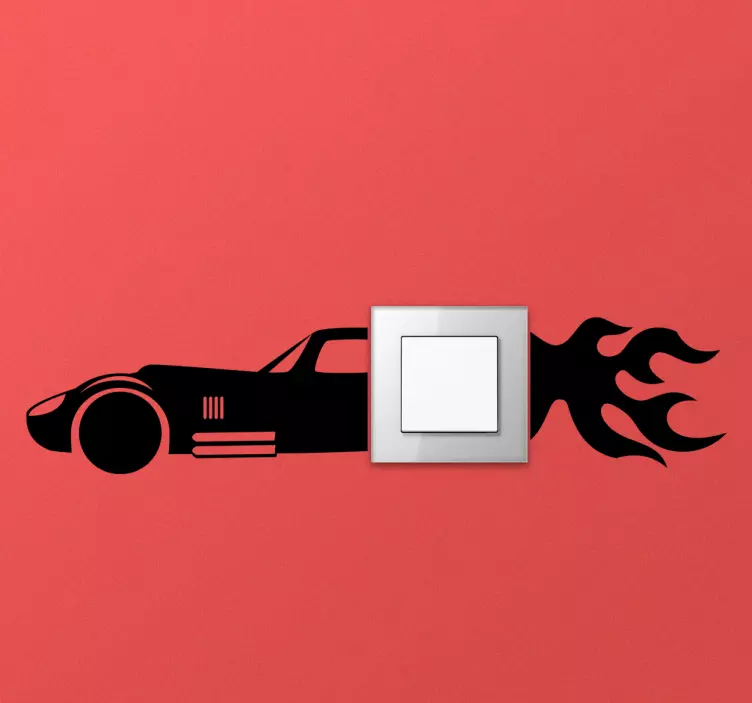 Introducing our stunning Light switch sticker racing car flames, a vibrant design that brings the thrill of speed right into your home! Featuring a dynamic silhouette of a racing car surrounded by fierce flames, this sticker is perfect for anyone who loves driving and wants to add a touch of excitement to their light switch. The sleek black design captures the essence of speed, making it an eye-catching addition to any room.