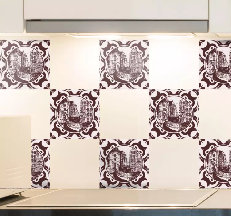 Introducing the Location sticker historic canal view, a stunning decorative piece that showcases charming houses lining a picturesque canal. This vibrant design features intricate patterns reminiscent of classic tiles and beautiful architecture that captures the essence of a lively cityscape. Perfect for adding a touch of European flair to your space, this sticker is not just an art piece; it’s a celebration of culture and history!