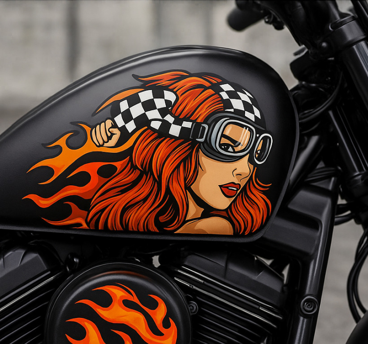 Reference: A54181The Motorcycle sticker vintage goggle maiden features a stunning design that captures the essence of adventure and freedom on two wheels. With its vibrant colors and intricate graphics, this sticker showcases a vintage goggle maiden theme, making it a perfect addition to any motorcycle enthusiast's collection. The eye-catching visuals are sure to draw attention, adding a unique flair to your ride!