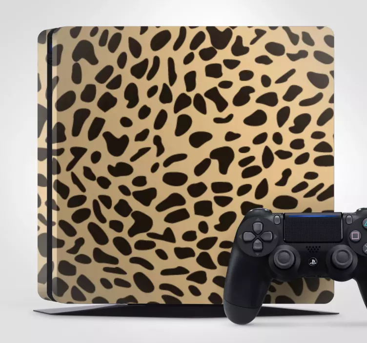 Elevate your gaming experience with our Ps4 skin animal print cover, adorned with a stunning animal print design that seamlessly blends leopard patterns with geometric shapes in bold black and beige tones. This captivating aesthetic not only protects your console but also transforms it into a striking centerpiece in your gaming setup!
