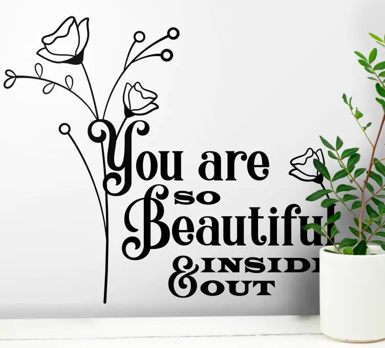 Introducing our stunning Quote sticker you are so beautiful inside, a perfect blend of floral design and inspirational text! This beautiful sticker features delicate flowers that surround a positive message, making it a delightful addition to any space. Its vibrant colors and elegant typography inspire beauty and positivity, creating an uplifting atmosphere wherever it's placed.