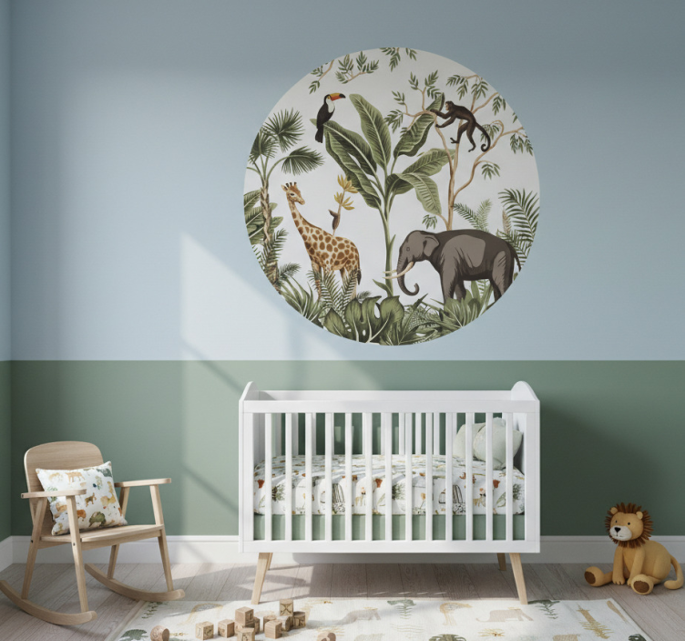 Reference: A54608Transform your space with the enchanting Safari wall circle wall sticker, featuring a vibrant design that brings the wild to your walls! This stunning wall sticker showcases a delightful blend of safari animals and lush landscapes, making it a perfect addition to any child's room or adventure-themed decor. The combination of bright colors and whimsical illustrations creates a captivating atmosphere that sparks imagination and joy!