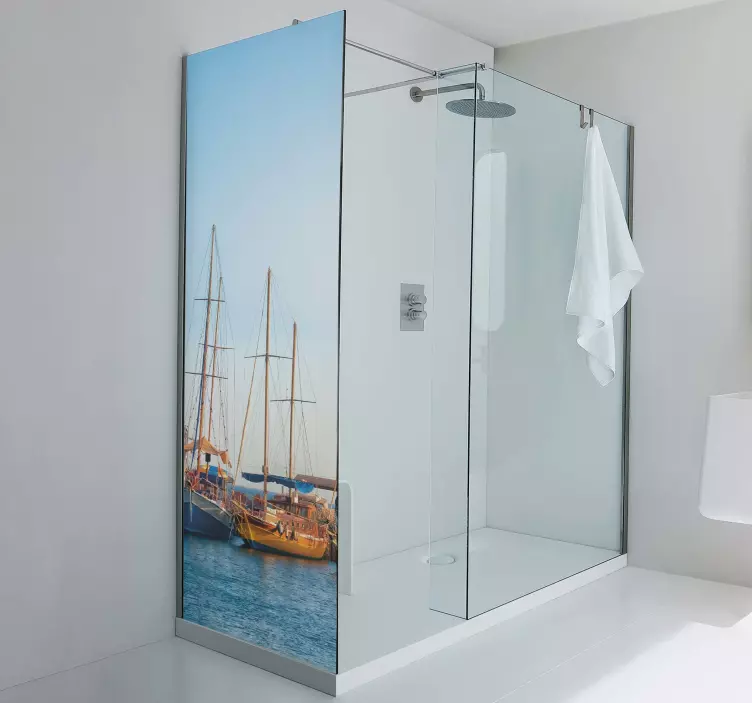 Transform your shower space into a delightful maritime escape with our Shower screen sticker sailing boats scene. This stunning design captures the essence of sailing with charming boats gracefully gliding across the water, set against a serene dock in a picturesque harbor. The vibrant colors and detailed photography evoke a sense of tranquility and adventure that brings the marine world right into your home. Perfect for those who appreciate the beauty of nautical themes, this sticker adds a refreshing touch to your outdoor-inspired bathroom decor.