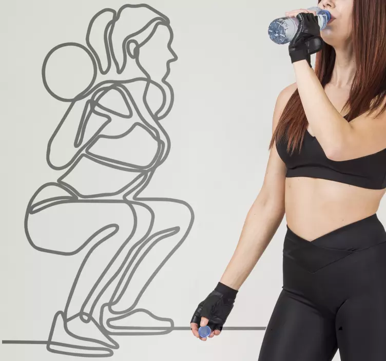 Transform your space with our Sports wall sticker dynamic fitness pose, a stunning design that captures the essence of movement and vitality. This beautiful artwork features a woman engaged in a dynamic fitness pose, showcasing her athleticism through elegant lineart and drawing. Perfect for any gym, this sticker embodies a healthy lifestyle and encourages an active spirit, making it a great addition for those who value exercise and sport!