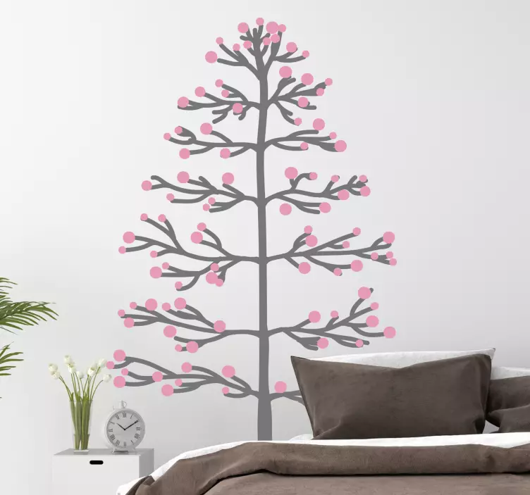 Introducing our stunning Tree wall sticker innovative tree design, a beautiful graphical representation that captures the essence of nature. This design features intricate branches adorned with delightful floral elements, creating a whimsical winter scene in a lovely shade of pink. Transform your space with this enchanting tree illustration that brings a touch of the outdoors inside!