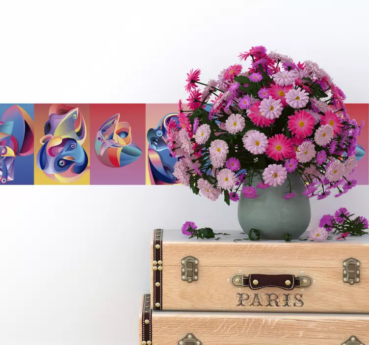 Transform your space with our Wall border sticker abstract colorful shapes! This stunning design features playful abstract forms with vibrant colors, showcasing geometric shapes and delightful animals. It's a modern touch that brings joy and creativity to any room!