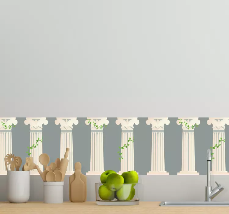 Transform your space with our Wall border sticker classic column design, a stunning blend of elegance and sophistication! This design features a beautiful arrangement of greek columns intertwined with delicate vine motifs, creating a mesmerizing border that enhances the charm of any interior style. Perfect for kitchens and living areas, this wall border sticker adds a touch of class to your home decor.