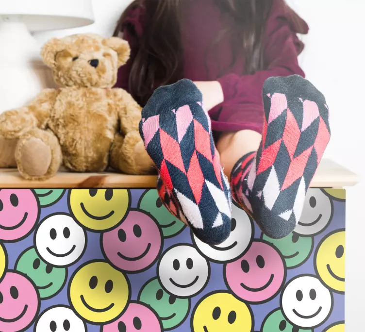 Transform your space with our vibrant Wall sticker colorful smile patterns. This delightful design features playful smiley faces in soft pastel colors that radiate happiness and fun. Perfect for adding a touch of cheer to any furniture or decor, this lively wall sticker is sure to brighten up your home and bring smiles to everyone who sees it!