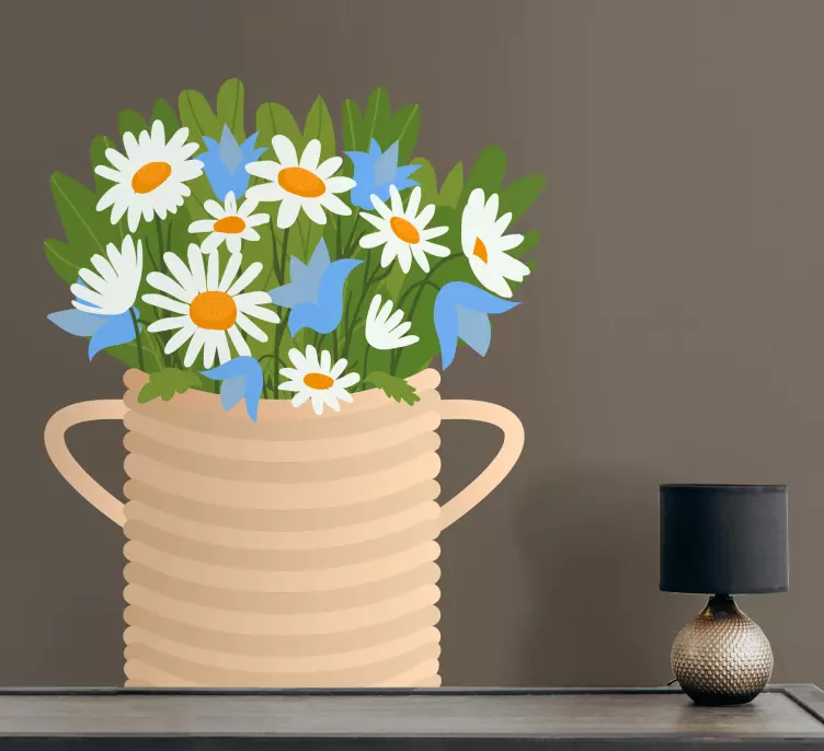 Transform your space with our stunning Wall sticker floral arrangement vase! This exquisite design features a beautifully crafted vase adorned with vibrant flowers, including cheerful daisies with delicate blue petals and lush green leaves, bringing the essence of nature right into your home. Let this captivating floral scene energize your walls and elevate your decor!