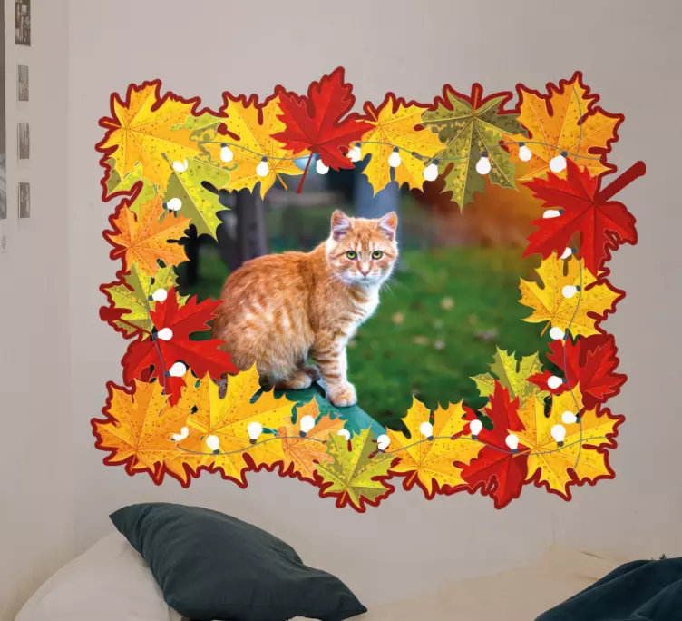 The Wall sticker frame cat surrounded by leaves brings a delightful fusion of nature and art into your home. This design features a charming cat framed by an array of colorful autumn leaves, creating a vibrant scene that celebrates the beauty of nature. With its custom photo appeal, this wall sticker captures the essence of autumn while showcasing the playful spirit of our feline friends.