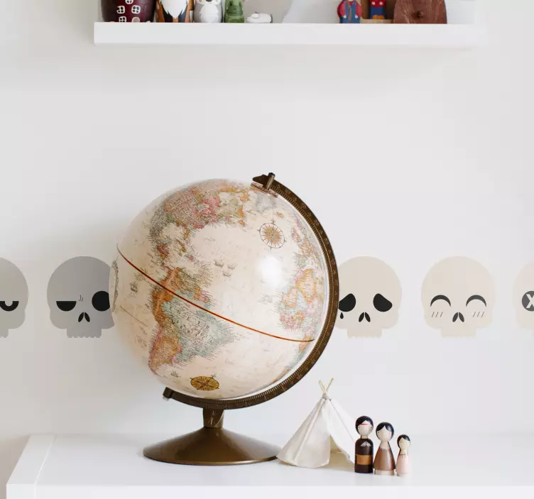 Transform your space with our Wall sticker whimsical skull faces, featuring a vibrant collection of playful pirate-inspired skulls and expressive characters framed by a captivating border. This decorative design brings a unique and joyful touch to any room, making it perfect for those who appreciate whimsical art and want to add character to their decor!