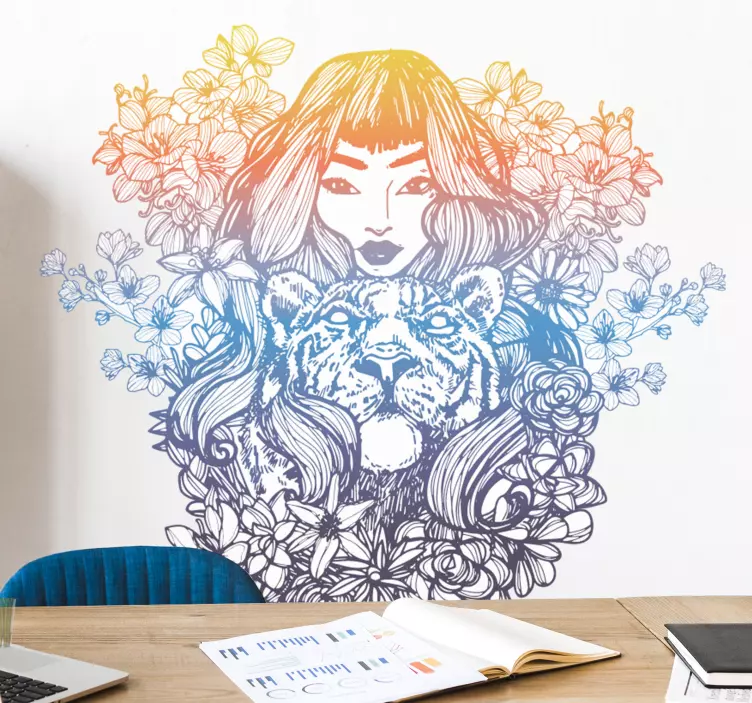 Wall sticker woman with tiger