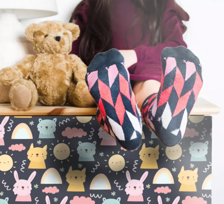 Transform your child's room into a whimsical wonderland with our Wall stickers for kid adorable creature designs. Featuring delightful animals, playful rainbows, and vibrant patterns, these stickers add a fun and colorful touch to any furniture or wall. The cartoon characters are designed to spark joy and imagination, making them perfect for children who love a playful environment.