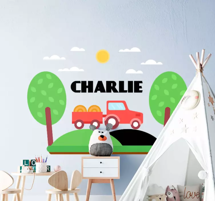 Transform your child's space with our enchanting Wall stickers for kid custom truck scene. This delightful design features a charming tractor amidst a vibrant farm scene, complete with playful trucks, lush greenery, and friendly trees. Perfectly crafted for children, these customisable stickers bring a touch of nature into your home, allowing your little ones to enjoy sunny adventures without stepping outside!