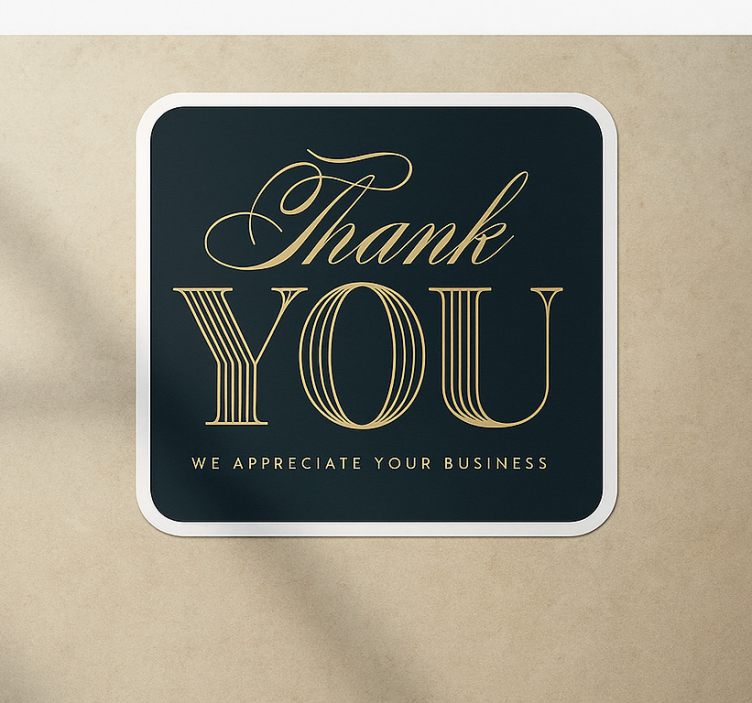 Reference: A46210Introducing our We appreciate your business quote sticker! This beautifully designed decal features an elegant font that captures the essence of gratitude and positivity. The graphic design incorporates a mix of vibrant colors and a smooth satin finish, ensuring that it seamlessly blends with any decor while radiating warmth and inspiration.