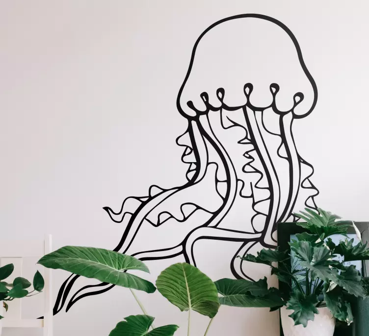 Discover the beauty of the ocean with our Wild animal sticker elegant jellyfish outline. This stunning design features a jellyfish drawing that captures the essence of marine life in a minimalist art style. The black and white outline elegantly showcases the delicate features of this aquatic creature, making it a captivating addition to any space. Let your walls come alive with the serene charm of the ocean!