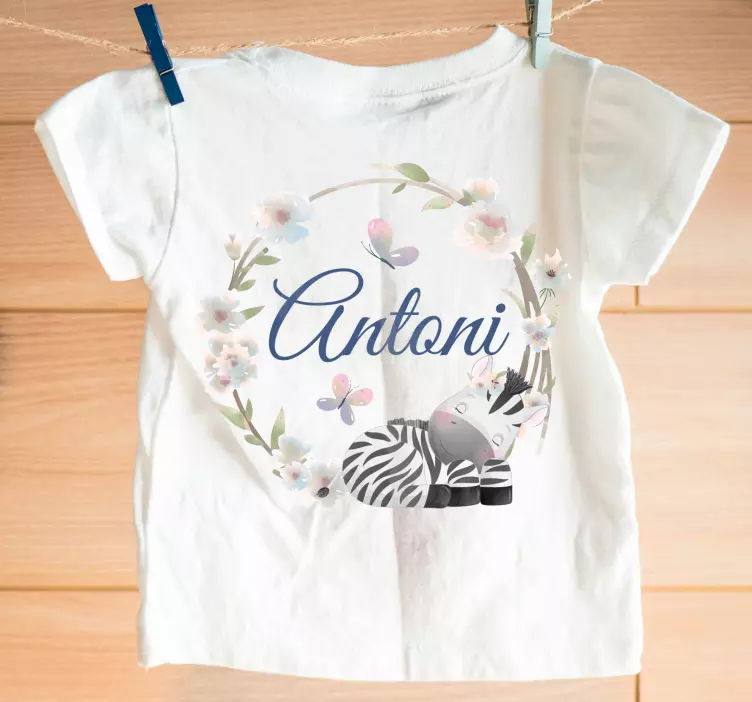 Welcome to a world of whimsical charm with our Baby t-shirt personalized zebra nursery! This delightful design features a cute zebra peacefully sleeping amidst a beautiful wreath of flowers, all crafted with a stunning watercolor effect. Perfectly customisable, you can add your little one's name to make it uniquely theirs. This shirt is not just a piece of clothing; it's a heartfelt expression of love and imagination for your baby!