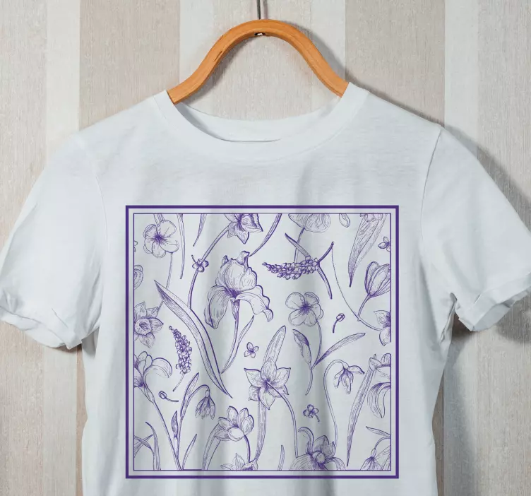 Introducing our stunning Botanical motif arrangement t-shirt, featuring a beautiful design inspired by nature! This unique t-shirt showcases an enchanting graphical representation filled with crocus flowers in vibrant shades of purple. The intricate pattern background enhances the floral art, perfectly blending sketch and illustration styles that bring a touch of nature to your wardrobe. Embrace the beauty of botanical designs and express your love for the outdoors with this exquisite piece!
