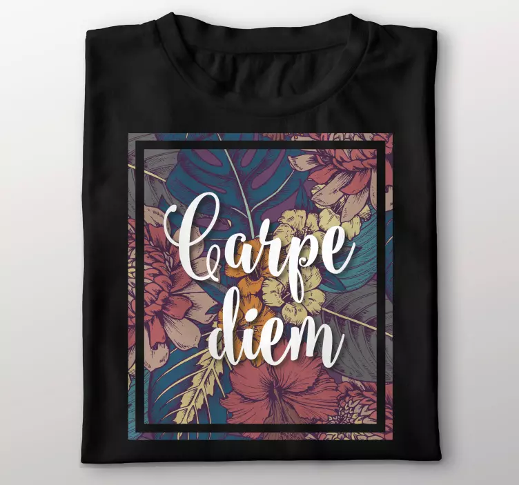 Embrace the spirit of living in the moment with our Carpe diem floral design t-shirt! This t-shirt is not just a piece of clothing; it's a reminder to seize the day and appreciate the beauty around you. With its unique floral design and motivational message, it serves as a daily source of inspiration. Wearing it will not only enhance your style but also uplift your spirit, making it a must-have addition to your collection!