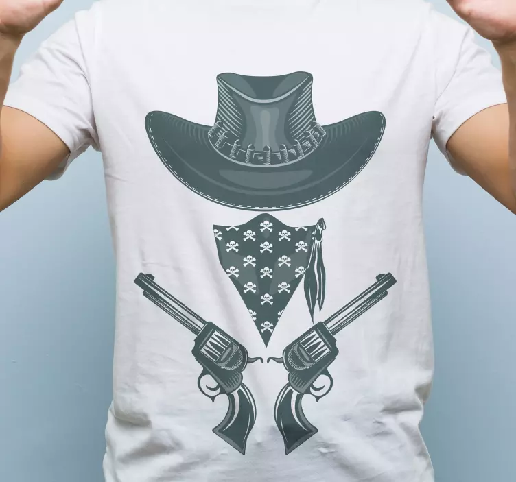 The Cowboy hat and guns t-shirt is not just a piece of clothing; it's a statement of individuality and flair! This t-shirt inspires a sense of adventure and freedom, allowing you to express your love for the wild west in a fun and fashionable way. Ideal for casual outings or themed events, this t-shirt will definitely turn heads and spark conversations. Embrace the spirit of the cowboy and make this t-shirt a part of your wardrobe!