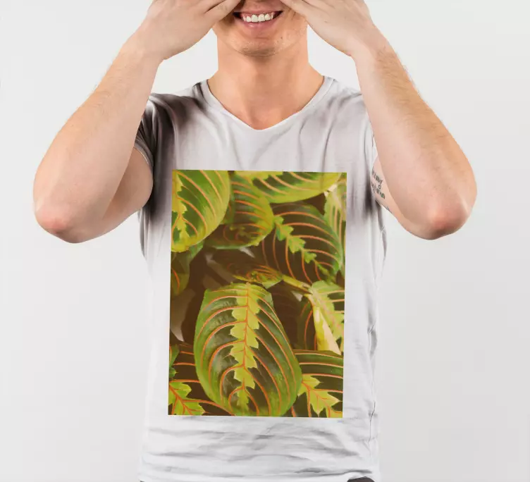 Introducing our stunning Green leaf pattern t-shirt, featuring a vibrant design that brings the essence of the tropics right to your wardrobe! This fresh and exotic t-shirt showcases beautifully illustrated maranta leaves, capturing the lush textures of a jungle botanical setting. Each painted detail reflects nature's brilliance, making this piece not just an article of clothing but a statement of style and appreciation for the great outdoors!