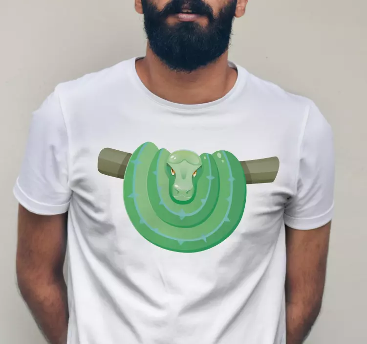 Caring for your Green snakelike design t-shirt is easy! Simply machine wash it at 30 degrees to keep it looking fresh and vibrant. For best results, iron inside out or use a barrier cloth over the design. Enjoy your stylish t-shirt for many wears to come!