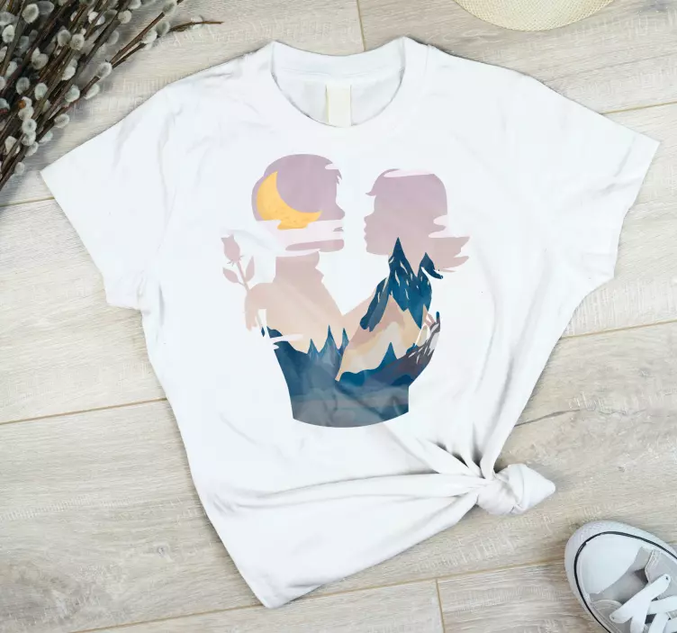 This enchanting mother and daughter t-shirt silhouette of bonding beautifully captures the essence of familial love. The design features a charming nipponese illustration of a mother and daughter, surrounded by the serene beauty of nature, with a moonlit backdrop and majestic mountains. This silhouette radiates tenderness and embodies the special bond between a mother and her child, making it a perfect symbol of love and togetherness.