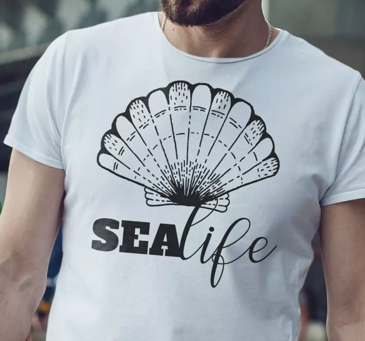Reference: T5387This design features a beautifully illustrated seashell above the word 'SEAlife' in contrasting styles. The monochrome color scheme enhances the aesthetic appeal, making it perfect for casual wear. Ideal for ocean enthusiasts and lovers of nature.