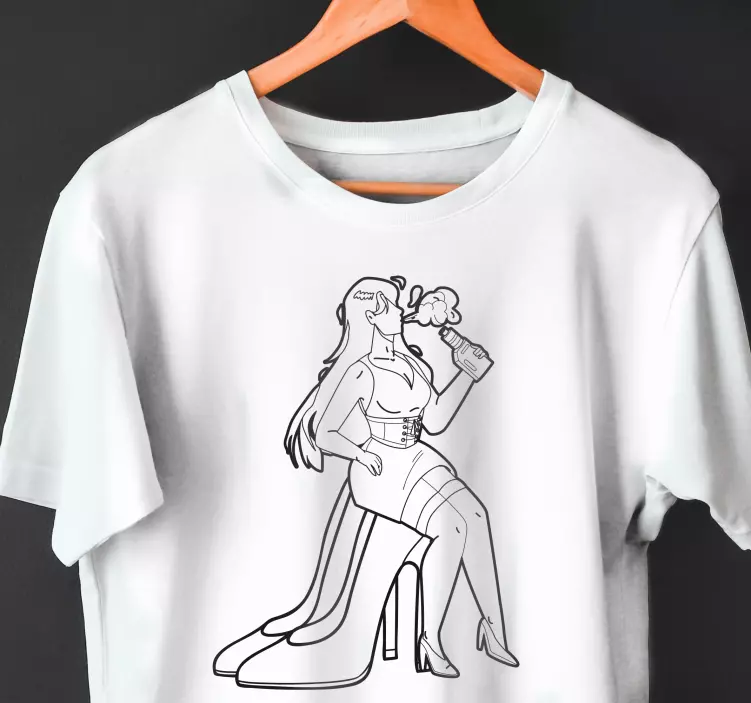 Introducing our Stylish high heel vibe t-shirt, a perfect blend of elegance and comfort! This unique design features a hand-drawn illustration of a confident woman in high heels, capturing the essence of fashion and sophistication. The silhouette exudes charm, while the sketch of her smoking a vape adds a modern twist, making it an eye-catching piece for any occasion. Whether you’re out for cocktails or enjoying a casual day, this t-shirt is sure to elevate your style!