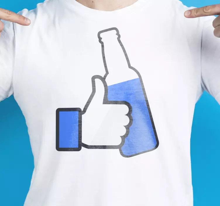 Reference: T4324This unique design features a thumbs up gesture alongside a beverage, symbolizing approval and enjoyment. Presented in a contemporary style with vibrant blue and clean white, it captures an informal and celebratory spirit suited for casual wear.
