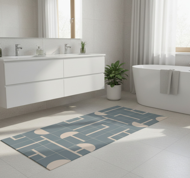 The Bathroom vinyl rug in greyish blue geometric design bathroom vinyl rug is more than just a practical necessity; it's a stylish addition to your bathroom that can elevate the overall decor. Its unique color and pattern create an inviting atmosphere, perfect for both relaxation and rejuvenation. Imagine stepping onto this gorgeous rug after a refreshing shower, feeling the soft texture beneath your feet. It's the perfect blend of design and comfort that transforms your bathroom into a chic sanctuary!