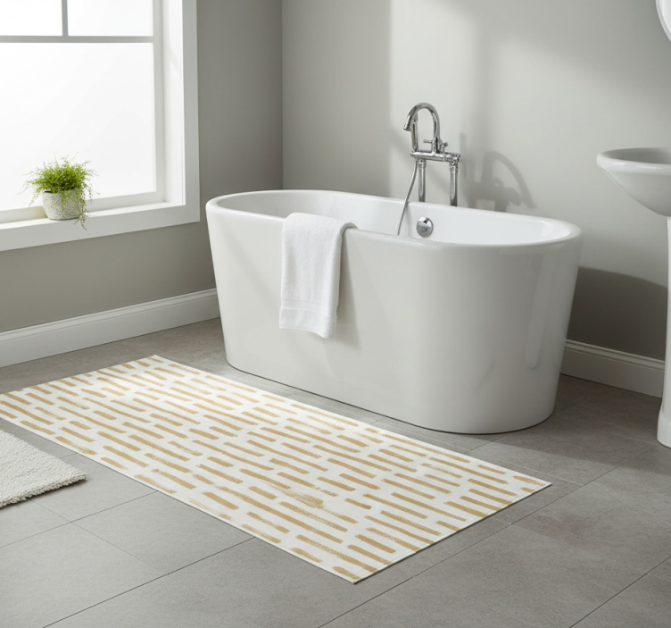 The Bathroom vinyl rug in light brown brush strokes bathroom vinyl rug is not just a floor covering; it's a statement piece that breathes life into your bathroom. Its beautiful design seamlessly blends with various styles, creating a cozy and inviting atmosphere. Imagine stepping onto this lovely rug after a shower, feeling comfort and elegance beneath your feet. Enhance your bathroom's charm with this exceptional rug that truly makes a difference!