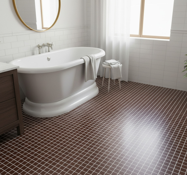 The Bathroom vinyl rug in mini chocolate brown mosaics bathroom vinyl rug is more than just a practical addition; it elevates your bathroom's charm! Imagine stepping onto a beautiful mosaic that complements your decor while providing comfort. This rug is designed to enhance your space with its rich color and intricate pattern, creating a beautifully harmonious atmosphere.