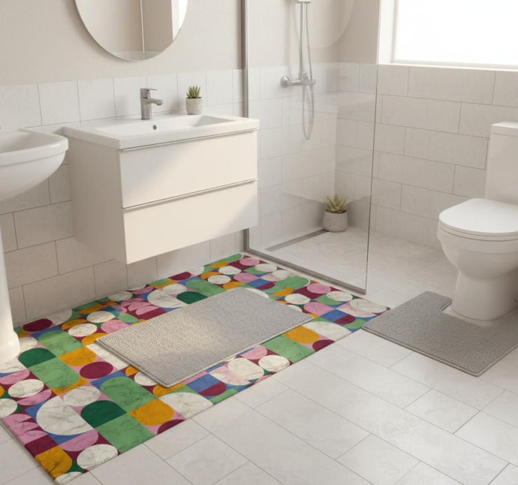 Reference: R23599Transform your space with the stunning Bathroom vinyl rug with geometric textured patterns! This eye-catching design combines vibrant colors and intricate shapes that bring a modern flair to your bathroom. Made from high-quality materials, this rug is not only visually appealing but also practical, offering features like thermal insulation and scratch resistance.
