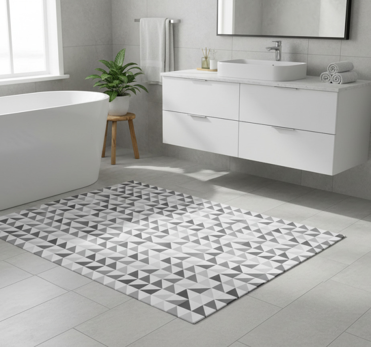 Bathroom vinyl rug with geometric triangles design