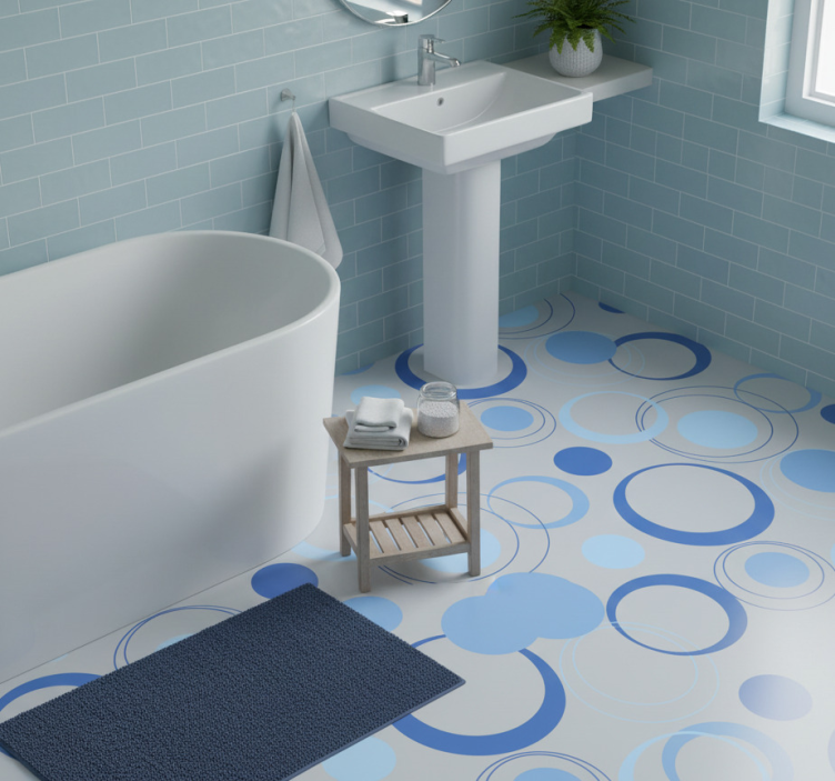 Bathroom vinyl rug with minimal blue bubbles